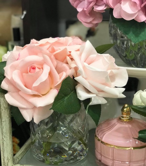 Красивая композиция из розовых роз в хрустальной вазе удивит естественным внешним видом и обновит Ваш декор и наполнит дом ароматом цветов Roses от Côte Noire. Каждый цветок искусно изготовлен вручную и имеет специальное натуральное покрытие, которое придает ему естественный оттенок и внешний вид. Утонченные французские розы выполнены настолько реалистично, словно сорваны в саду сегодня утром. Розы установлены в стеклянной вазе с гелем, наполненным прекрасным ароматом. Каждая роза красиво упакована вкоробку с лентами. Кроме того, к букету дополнительно в комплекте 2 бутылочки изысканных ароматов розы, которые распыляются на цветы, чтобы освежить и улучшить их аромат когда это необходимо.