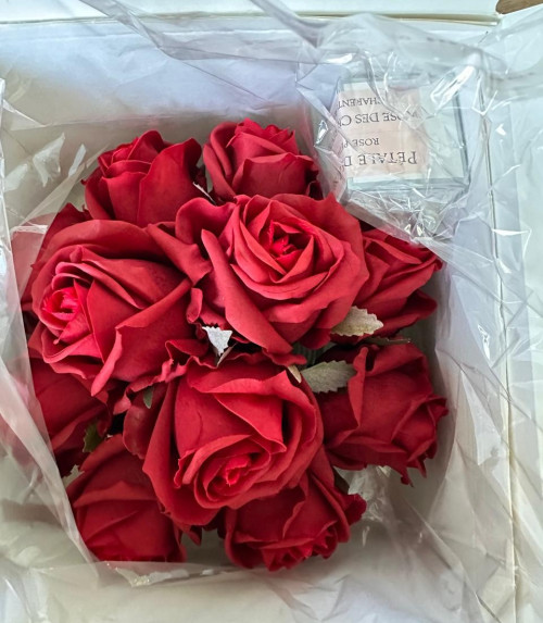 гелем, наполненным прекрасным ароматом. Каждая роза красиво упакована вкоробку