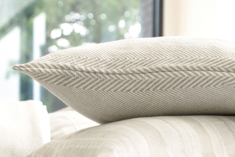 в элегантном дизайне елочка. Наволочки дополняют покрывало в таком же