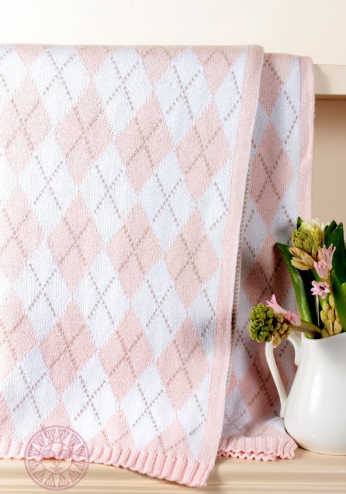 розово бежевыми ромбами, из мягкого натурального хлопка с рисунком Мишка,